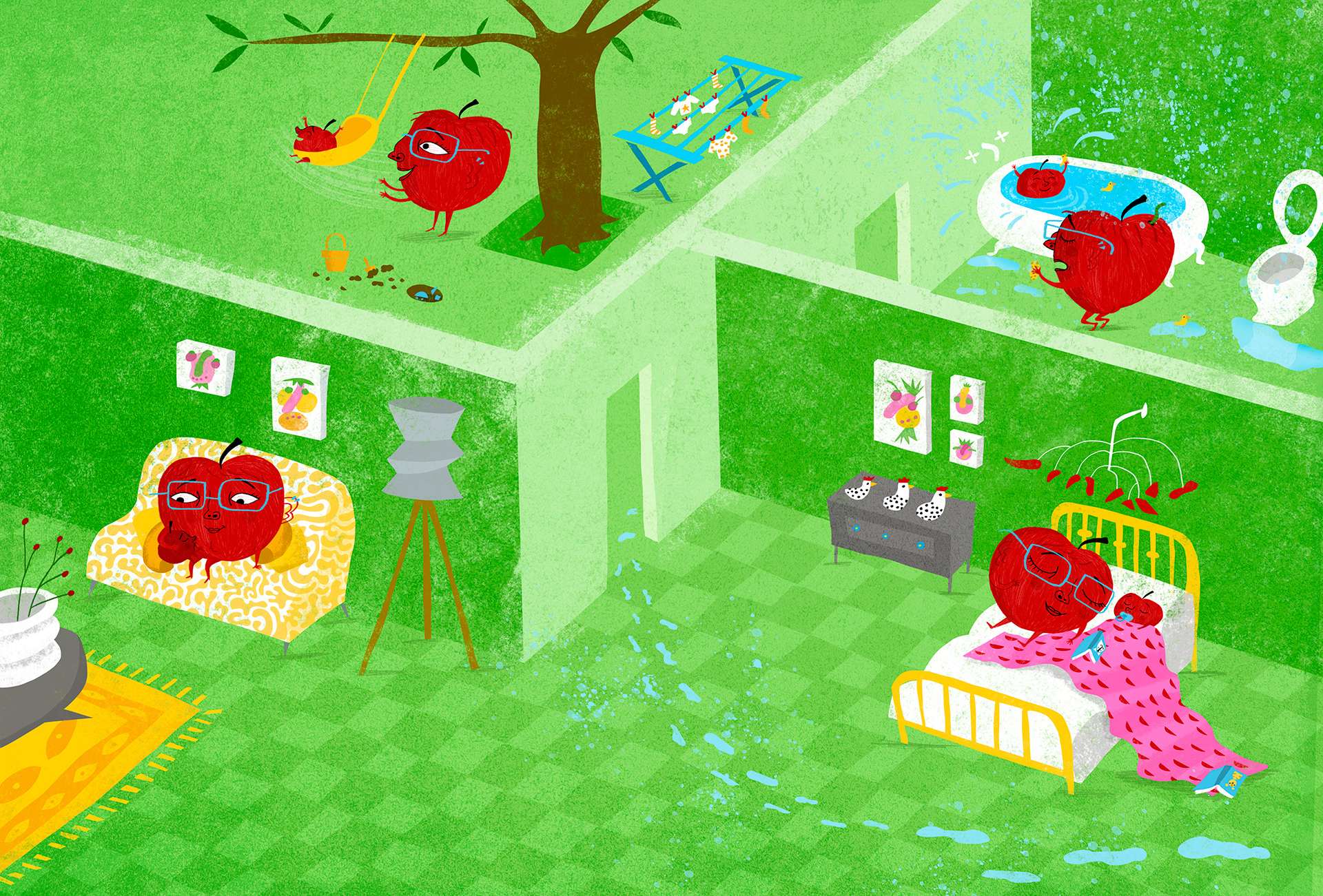 Ilustraciones del libro "Fruta Podrida". Editorial Ralenti 2023. Textos de Nicolás Schuff. ** Illustrations form the book "Rotten Fruit" Ralenti Publishing 2023. Texts by Nicolás Schuff.